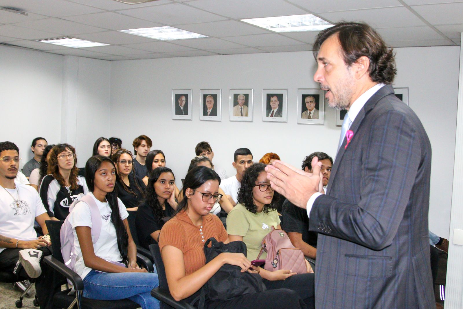 Líder do Governo, deputado Guilherme Sampaio, conversa com alunos do CIEE – Foto: Franzé Abreu