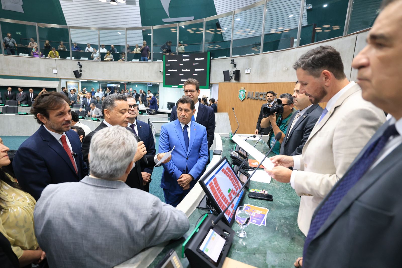Deputado Tony Brito presta juramento diante de membros da Mesa Diretora da Alece – Foto: Júnior Pio